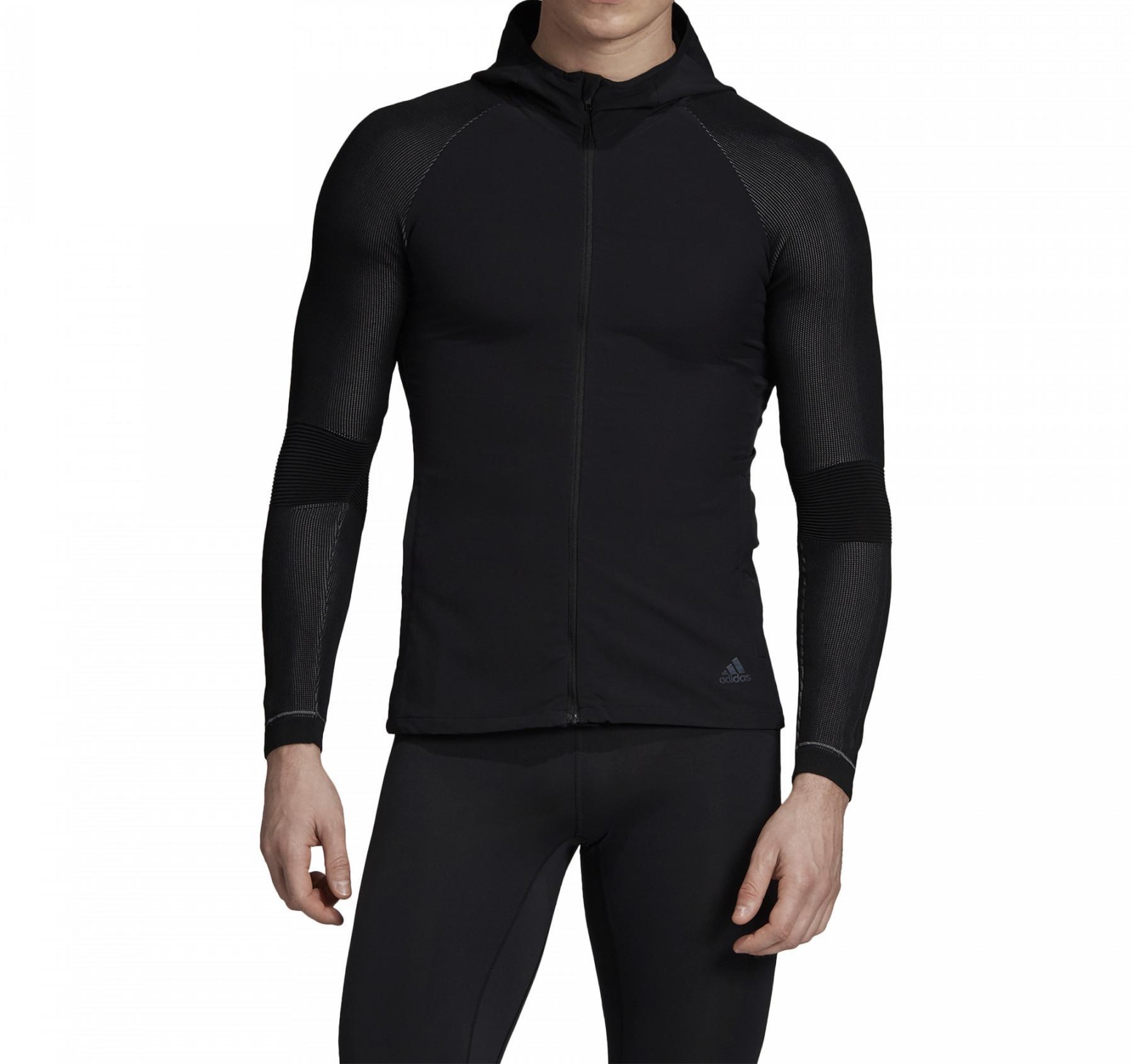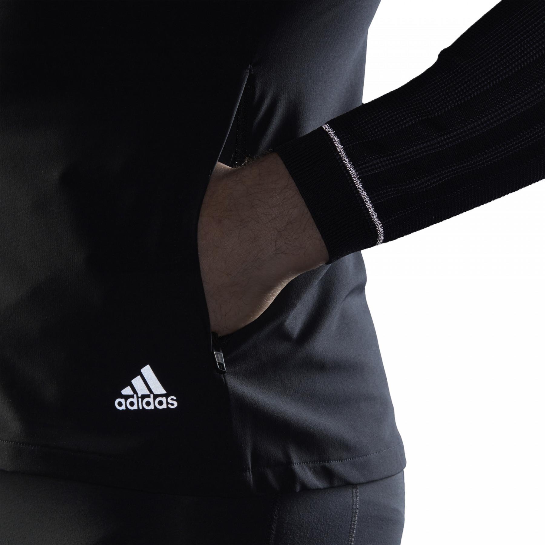 This men’s windbreaker from Adidas is perfect for training, outdoor activities, and city walks. Lightweight, water-repellent fabric provides protection against wind and rain.