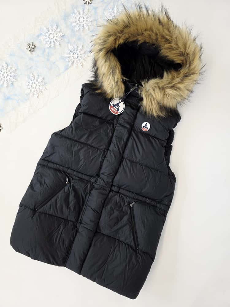 The lot includes vests for men and women suitable for all seasons — with or without hoods, with fur trim or without.