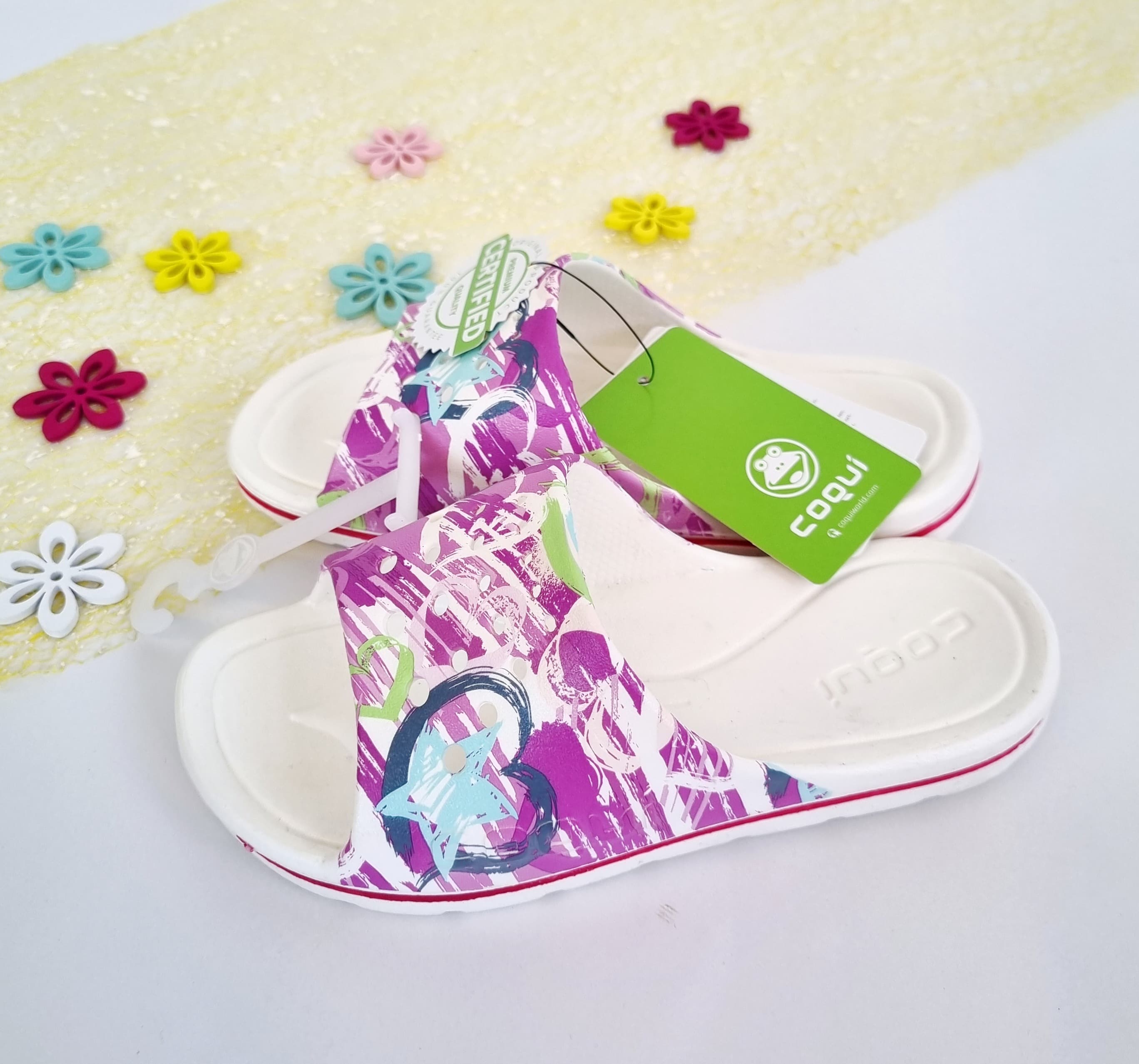 We offer a kids flip-flops mix from well-known brands such as Coqui, Willard, Aress, Arena, and others. Lightweight, comfortable, and colorful designs with cheerful prints make these flip-flops a favorite choice for children.
