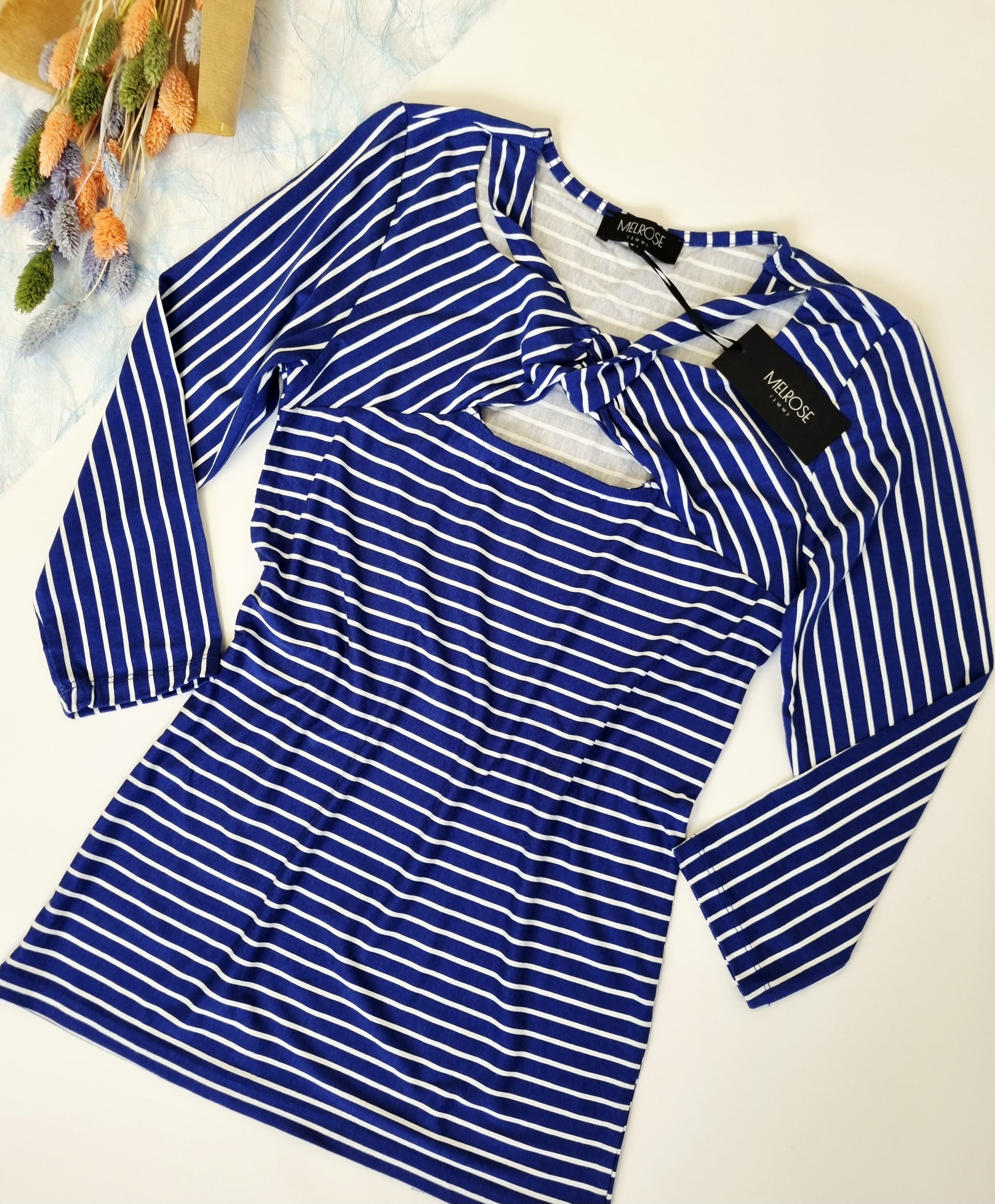 Colour: Blue and white stripes