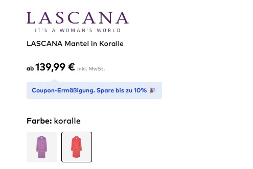 Wir präsentieren zwei Modelle stilvoller klassischer Damenmäntel des deutschen Brands Lascana in einer Verkaufspartie. Beide Modelle bestehen aus weichem, wärmendem Material mit Futter und eleganten Kragen: