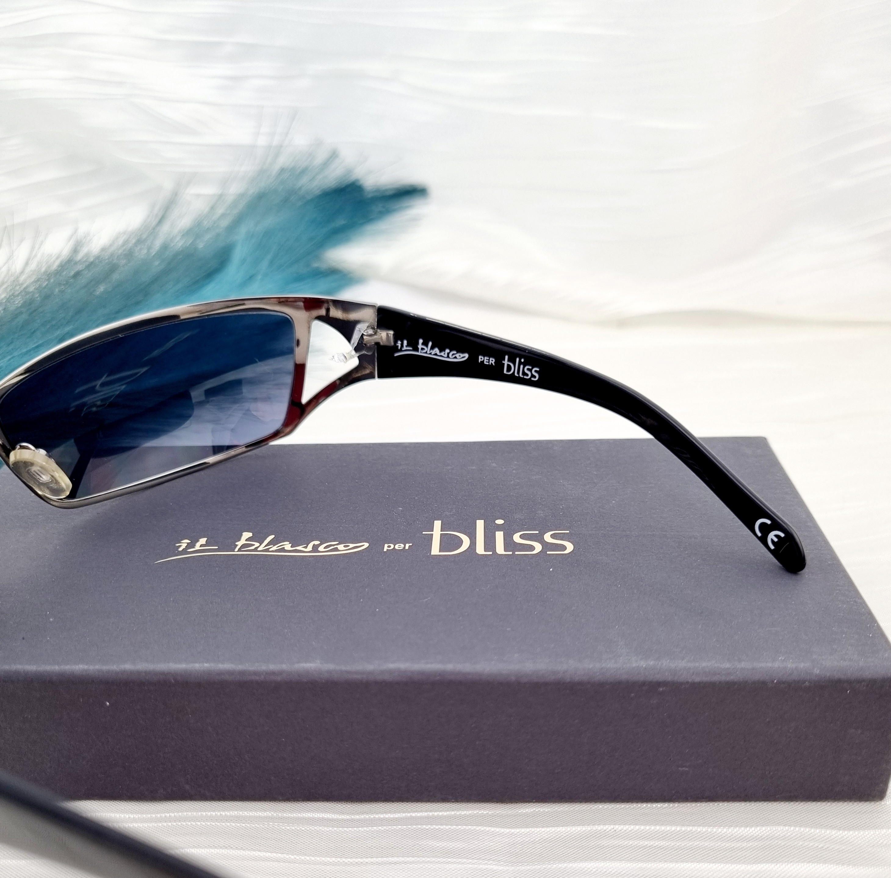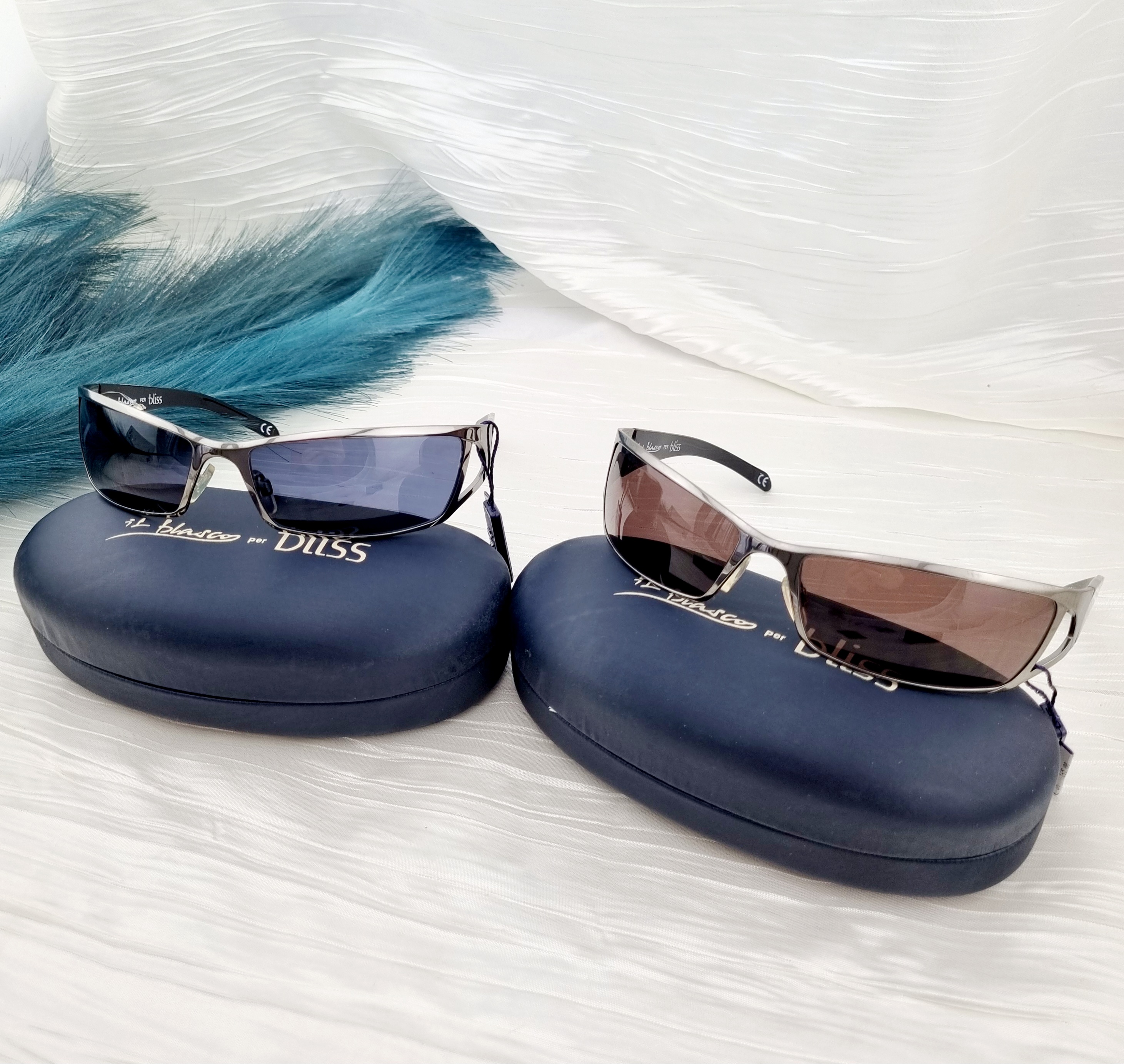 The lot includes one model with two lens colors: bronze and blue, the temple is decorated with a delicately inlaid diamond.