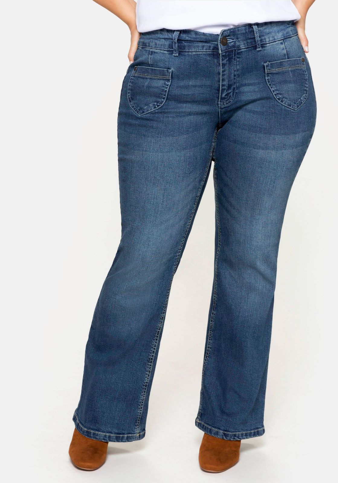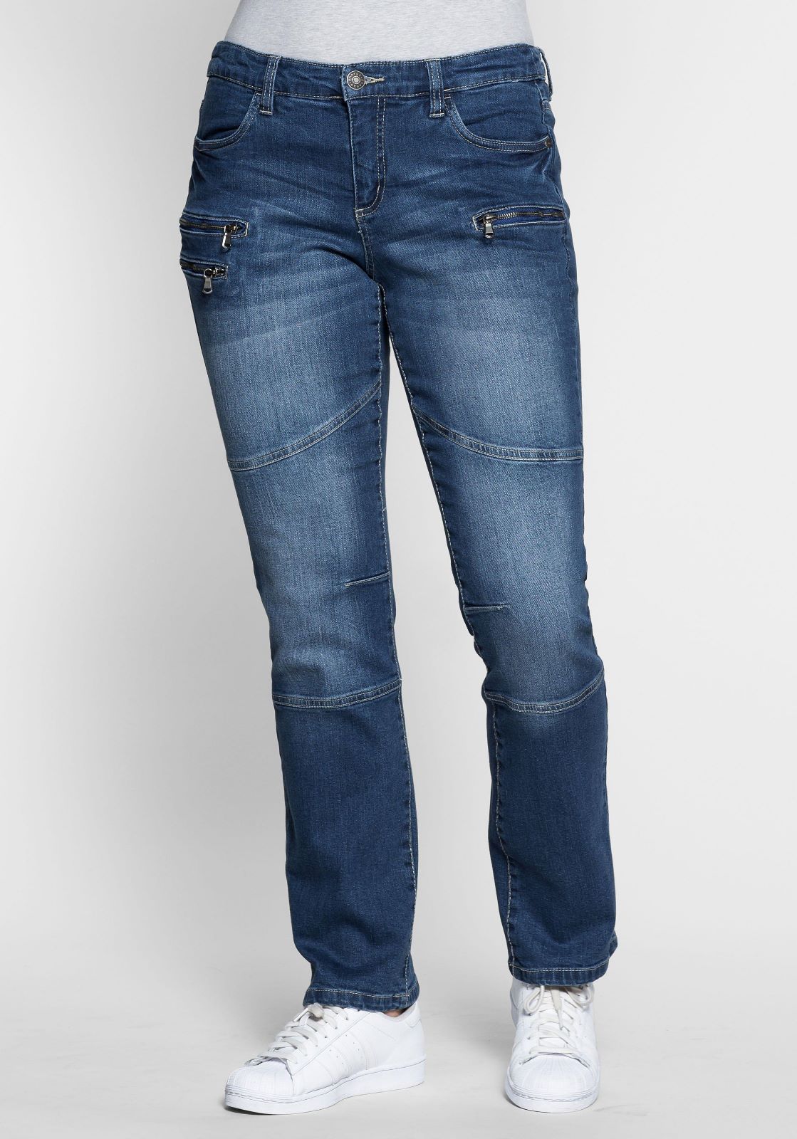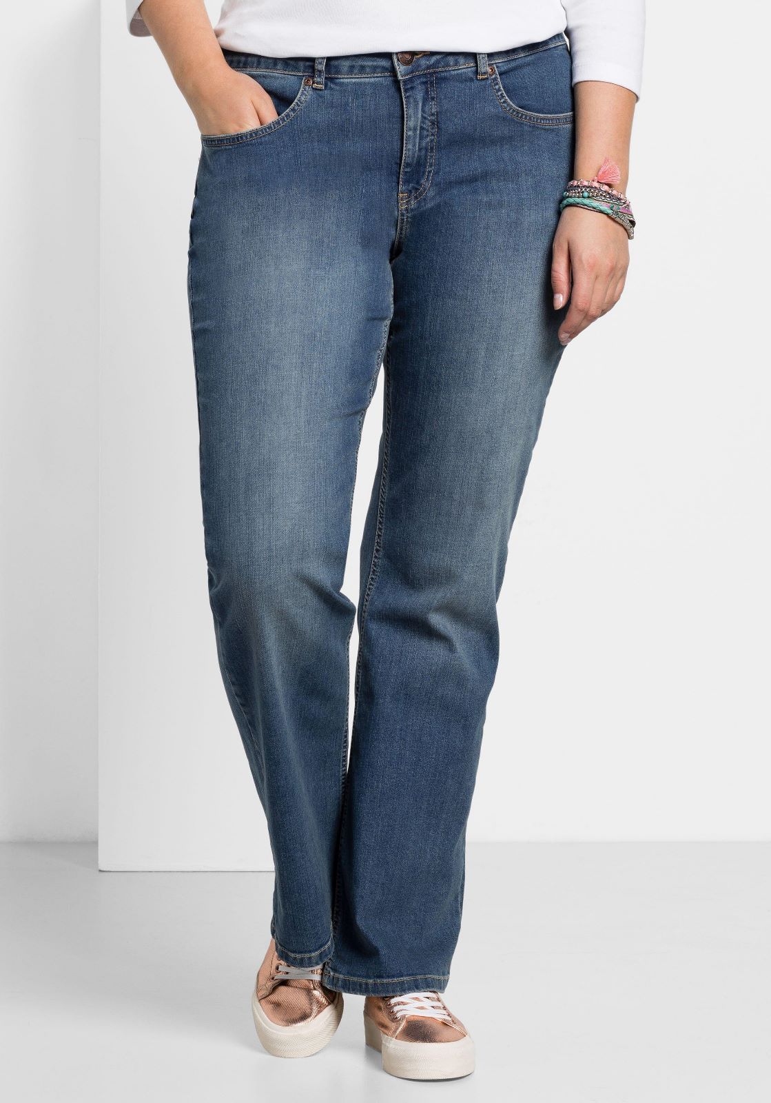 Немецкая компания Sheego любит женщин с пышными формами и специально для них создала микс из брюк, пуловеров, кардиганов, платьев, футболок, сарафанов, туник, джинсов, бридж, легких курток, комбинезонов и другой одежды, которая позволяет пышным красавицам наслаждаться своей внешностью сполна.